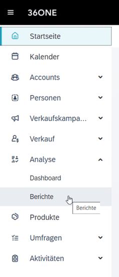 Die Performance einer Kampagne kann innerhalb von 36One im Bereich „Analyse“ --> „Berichte“ ausgewertet werden: