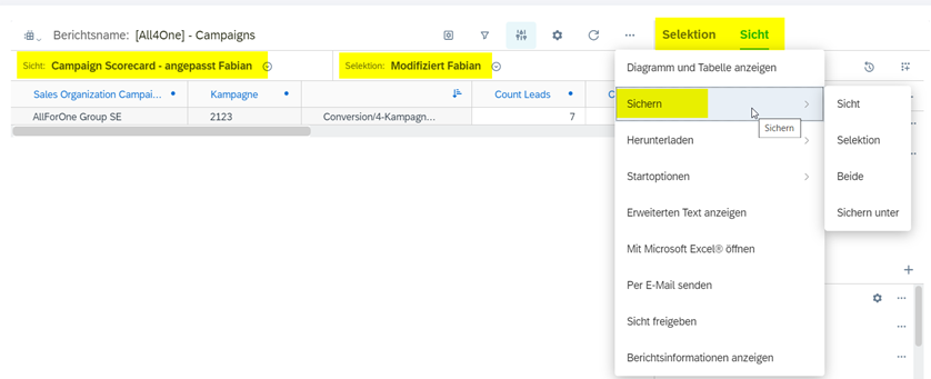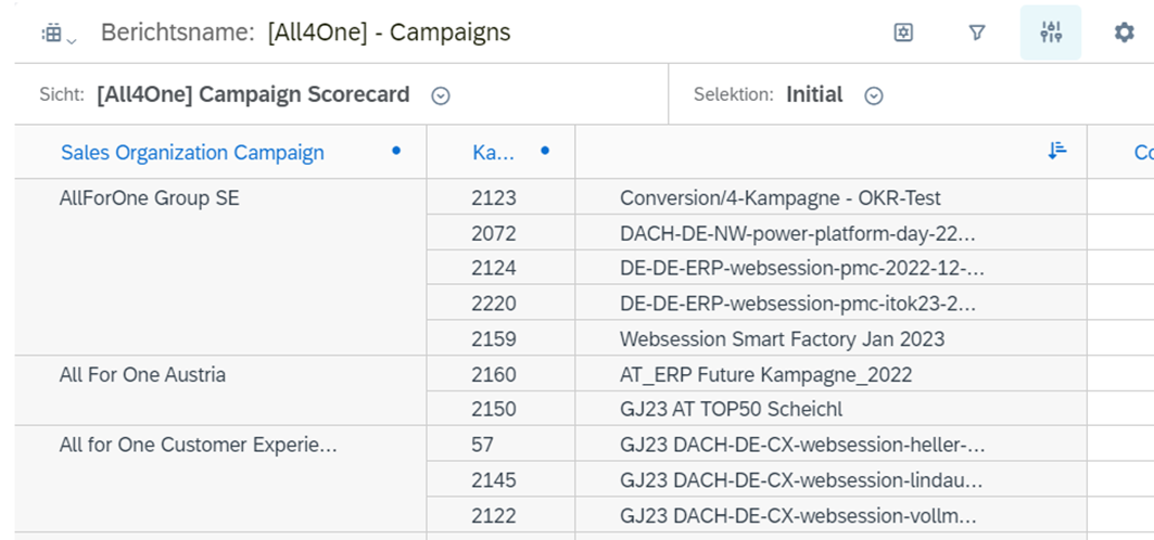 Hierfür wurde ein Bericht namens „[All4One] – Campaigns“ angelegt: