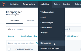 Erstellung einer Kampagne über das Kampagnen-Feature im Tab „Marketing“.