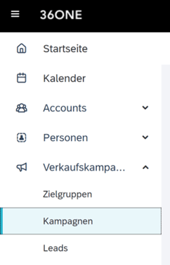Wenn du das 36One öffnest, findest du links in der Navigation unter Verkaufskampagnen den Reiter "Kampagnen".