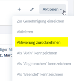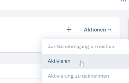 Nachdem alle relevanten Felder gepflegt wurden, kann die Kampagne über das „Aktionen“-Menü aktiviert werden.