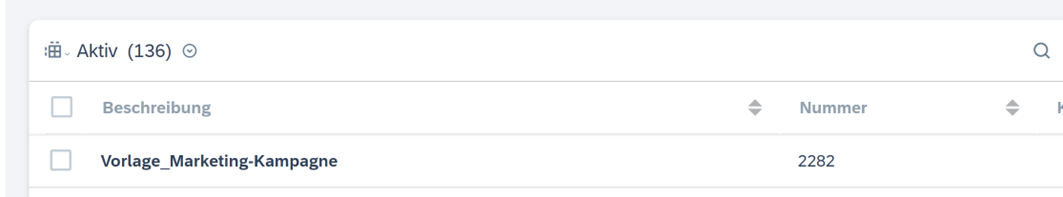 Für das Anlegen in 36One steht eine Vorlage zum Klonen bereit (Vorlage_Marketing-Kampagne; ID 2282).