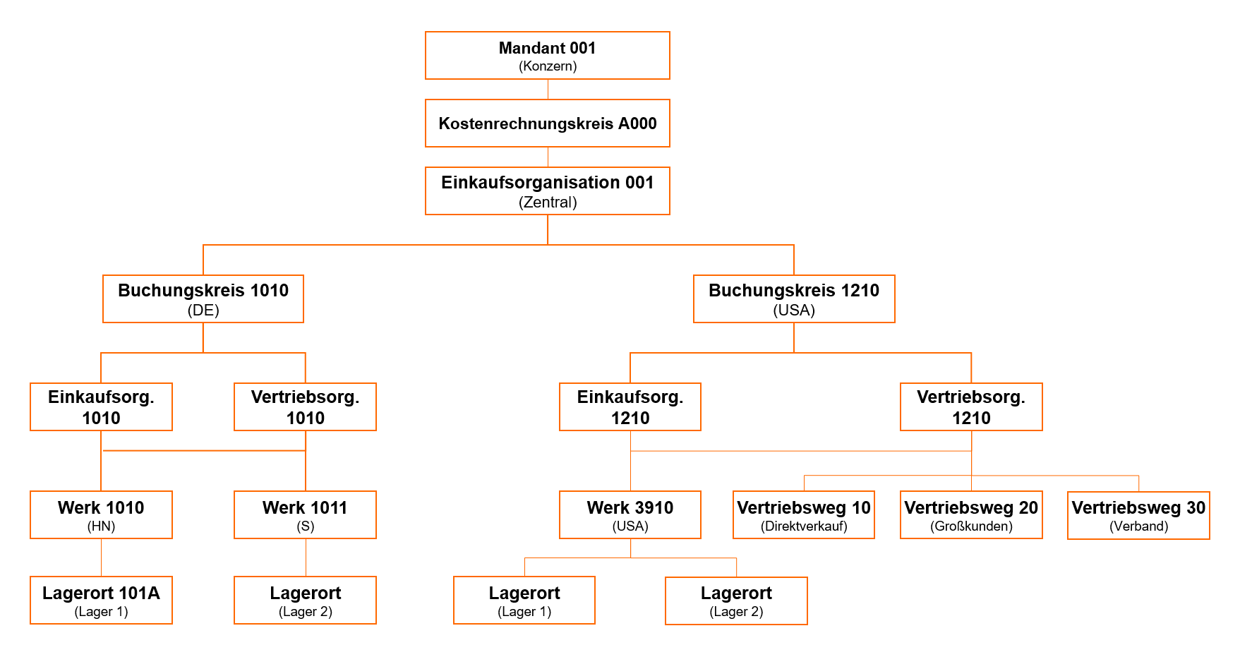 | Mandant | Der Mandant ist die höchste Ebene der Organisationselemente im SAP ERP-System, und bildet den vollständigen Unternehmenskonzern ab. | Unternehmen Gesamtgruppe |